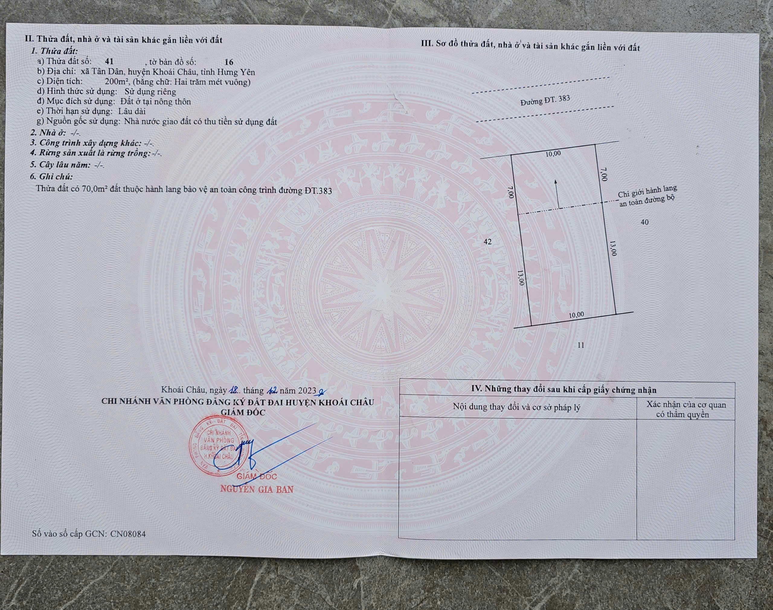 • Diện tích: 200m² thổ cư + 200m² đất dôi dư